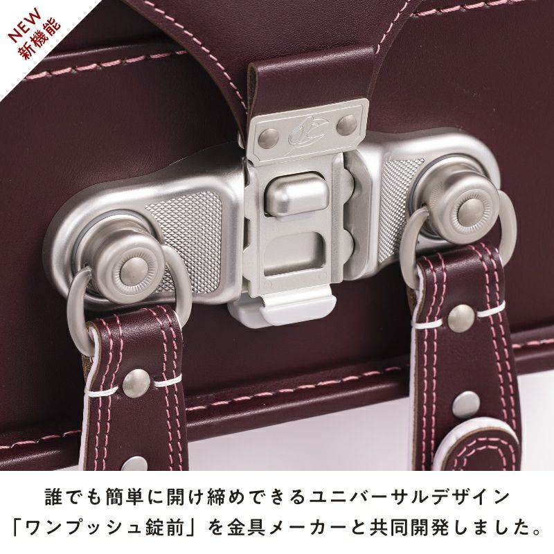 金具メーカーと共同開発したオリジナルの錠前は、誰でも簡単に開け締めできるユニバーサルデザイン。一般的な錠前に多い捻る操作は不要で、開けるのも締めるのもワンプッシュだから、まだ力の弱い小さなお子さまでもとっても簡単です。