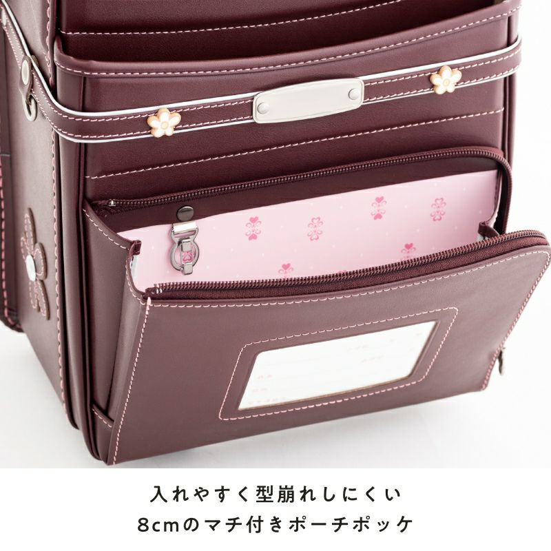また、どの素材も雨や傷に強い素材を使用していることもうれしいポイント。毎日の教材の出し入れにも耐えられる強度の高い内装は、こだわり派の女の子たちも納得の可愛いデザインです。